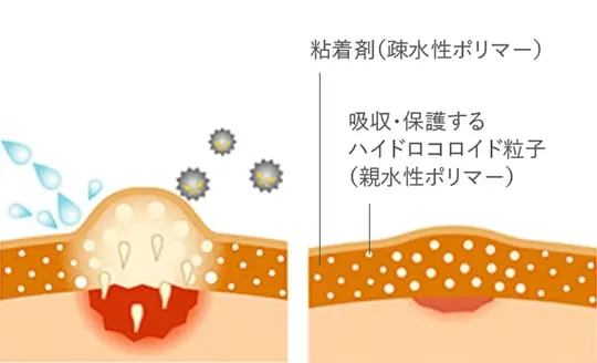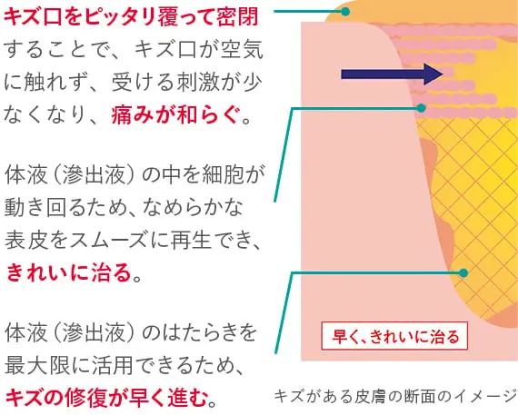 皮膚の回復に適した環境を整える体液(滲出液)を保つのでキズを早く治します。