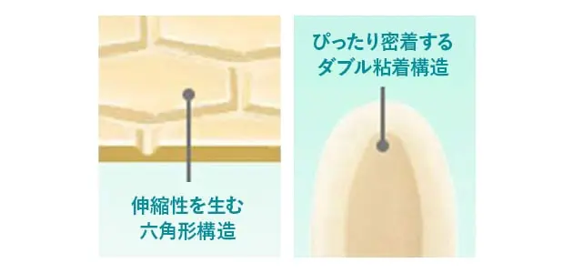 製品がはがれやすい辺縁部を薄くすることで、皮膚との密着度が高まり、はがれにくい構造を実現。