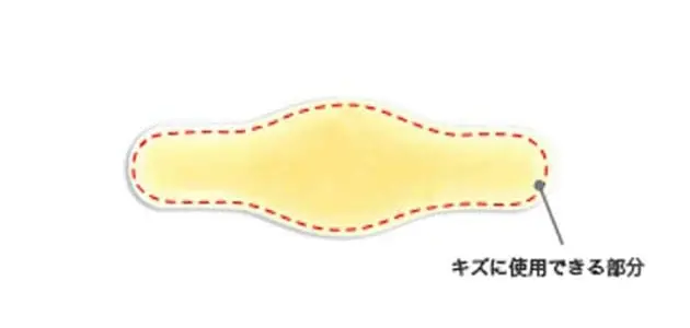全面がパッドになっているから同サイズの通常のばんそうこうよりもおおきなキズを覆うことが可能。